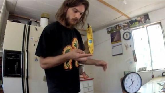 - must balance banana vertically, not on side