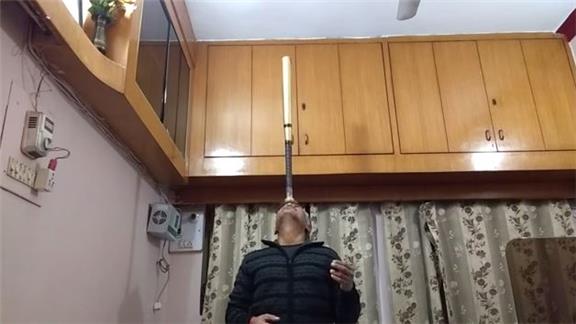 Suresh Gaur balanced a baseball bat on his nose for 12 minutes, 52.03 seconds.
