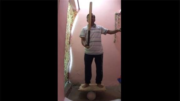 Suresh Gaur balanced a baseball bat on his right index finger for one minute, 19.75 seconds while on a rola bola.