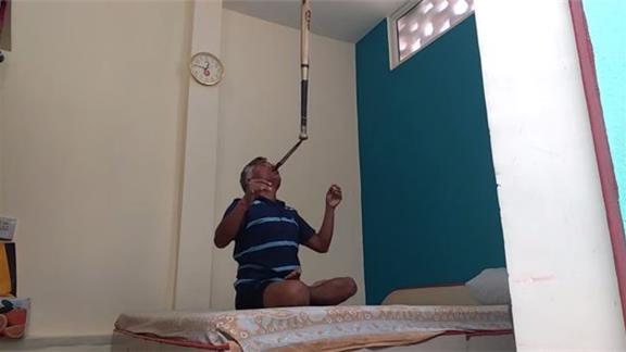 Suresh Gaur balanced a baseball bat on the tip of a knife held in his mouth for two minutes, 10.80 seconds while holding lotus pose.