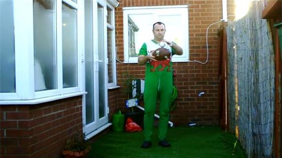 Mark E. balanced a baseball on top of a football held in his hand for nine minutes, 27.51 seconds.