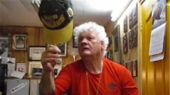 Doug McManaman balanced a Boston Bruins hat on his thumb for 42.38 seconds.