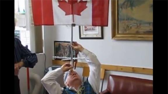 Doug McManaman balanced a Canadian Flag on his forehead and on his chin for four minutes, 4.43 seconds. He set the record inside a barber shop.