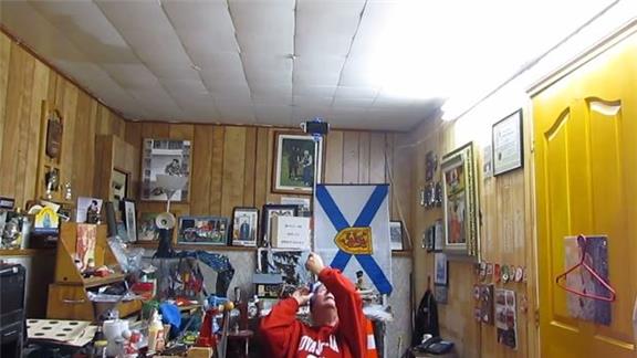 Doug McManaman balanced a cellphone on a selfie stick on his ear for one minute, 55.00 seconds while kneeling.