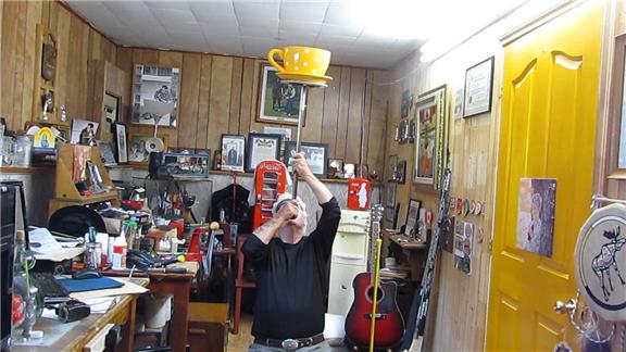Longest Time Balancing A Ceramic Cup And Saucer On Top Of A Pole On Chin While Kneeling