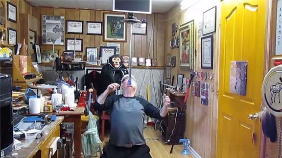 Longest Time Balancing A Computer Monitor On Top Of A Pole On Chin While Kneeling