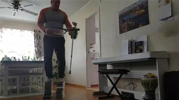 Thommy Ohlund balanced a crutch on a tennis racquet held in his hand for two minutes, 21.22 seconds while standing on 20 video cassettes.