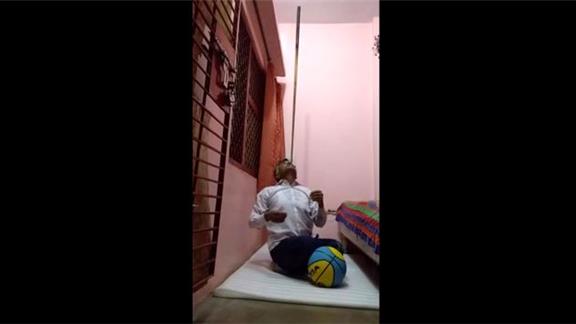 Suresh Gaur balanced a cue stick on his chin for one minute, 21.09 seconds while kneeling on a basketball.