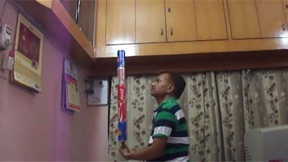 Suresh Gaur balanced five soda cans on his left thumb for 18 minutes, 35.89 seconds.