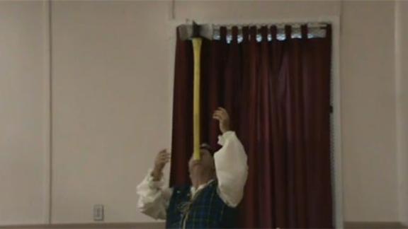 Doug McManaman balanced a four-bitted axe on his chin for 56.12 seconds.