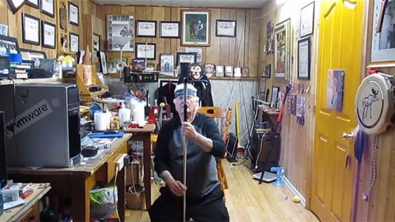 Longest Time Balancing Four Hockey Pucks On A Pool Cue On Right Ear While Kneeling