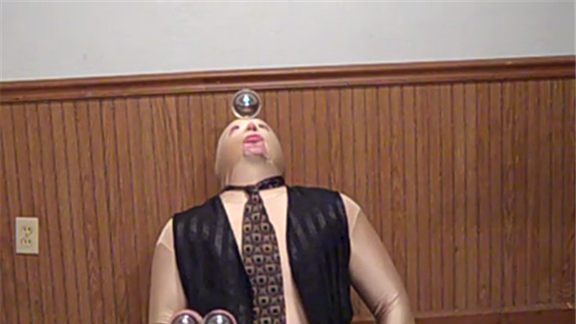 Gold Member balanced a Fushigi ball on his forehead while palm
