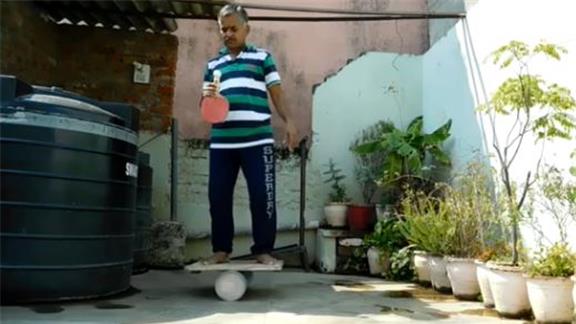 Longest Time Balancing A Golf Ball On A Table Tennis Paddle Handle While Standing On A Rola Bola
