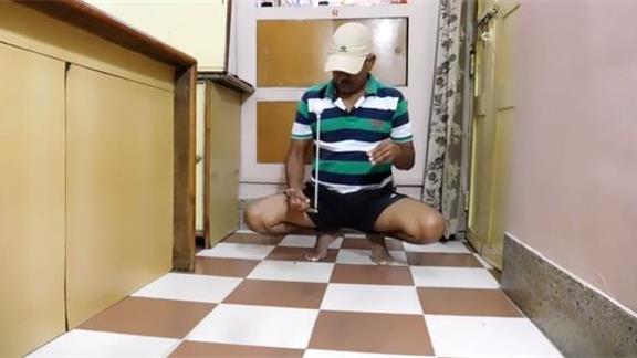 Suresh Gaur balanced a golf ball on top of a knitting needle on his pinky finger for one minute, 5.28 seconds while sitting on his toes.