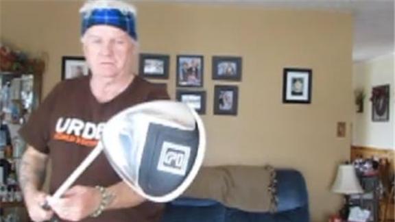 Doug McManaman balanced a left-handed golf driver on his chest for one minute, 57.35 seconds.