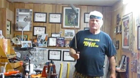 Doug McManaman balanced a golf putter on his right ear for two minutes, 8.59 seconds while kneeling.