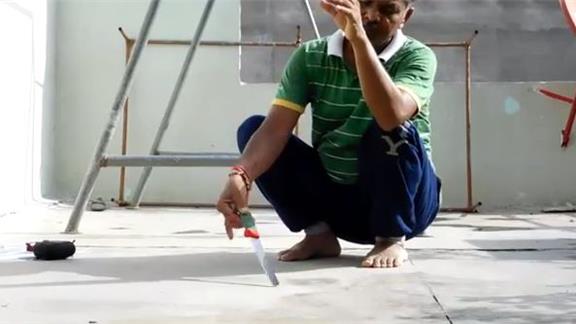 Suresh Gaur balanced a kitchen knife on his thumb for two minutes, 12.17 seconds while sitting on his toes.