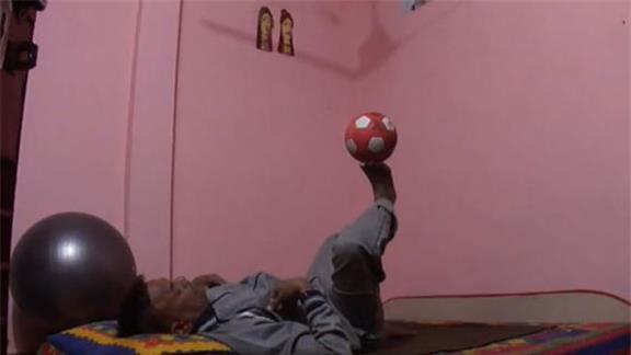 Suresh G. balanced a mini soccer ball on his right toe for two minutes, 56.29 seconds.