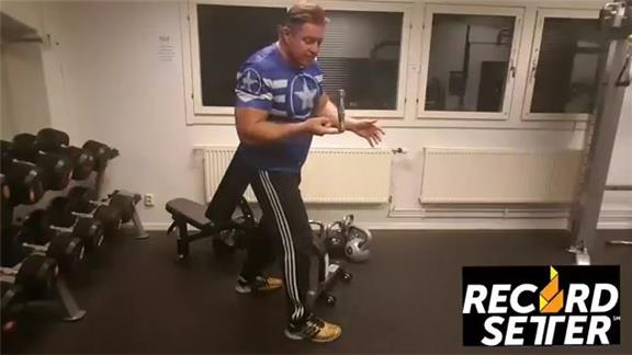 Thommy Ohlund balanced a one-kilogram fixed dumbbell on his index finger for one minute, 12.47 seconds.