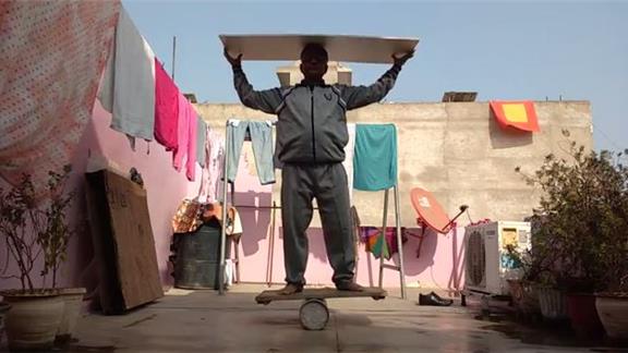 Suresh Gaur balanced a PVC board on his head for four minutes, 9.46 seconds while standing on a balance board.