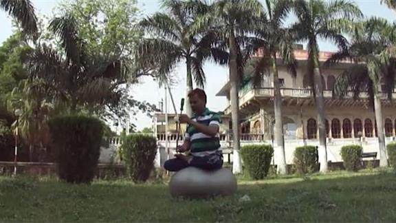 Suresh Gaur balanced a screwdriver on his right index finger for 55.85 seconds while holding a lotus pose on an exercise ball.