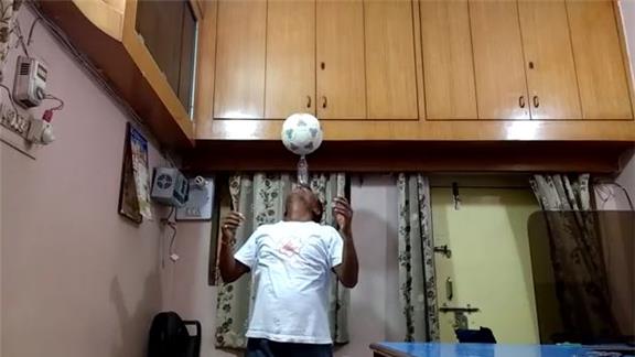 Suresh Gaur balanced a soccer ball on a plastic bottle on his forehead for four minutes, 3.87 seconds.