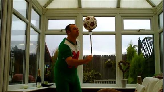 Mark Evans balanced a soccer ball on top of a solar light on his thumb for 10 minutes, 29.81 seconds.