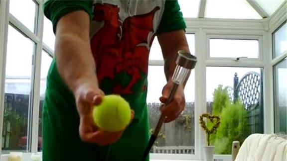 Mark Evans balanced a tennis ball on top of a solar light on his thumb for 34 minutes, 13.36 seconds.