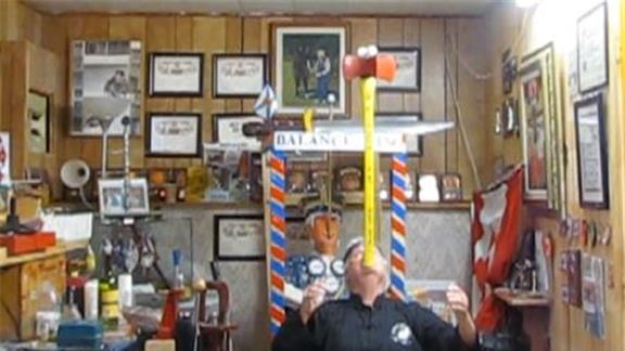 Doug McManaman balanced three eggs on top of a four-bitted ax on his chin for 28.22 seconds while kneeling.