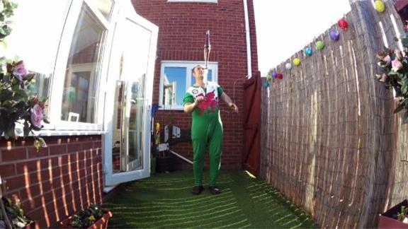 Mark E. balanced two beer bottles on top of a solar light on his thumb for six minutes, 36.22 seconds.