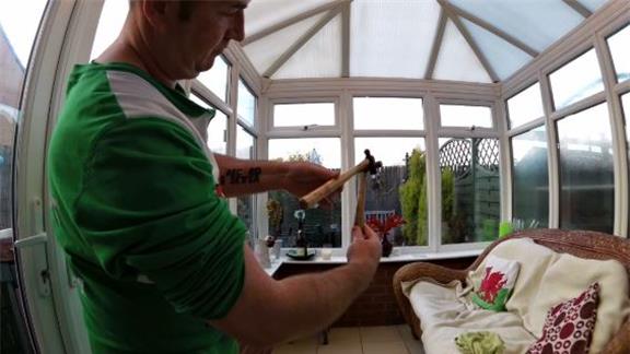 Mark Evans balanced two hammers on his right thumb for 16 minutes, 52.49 seconds.