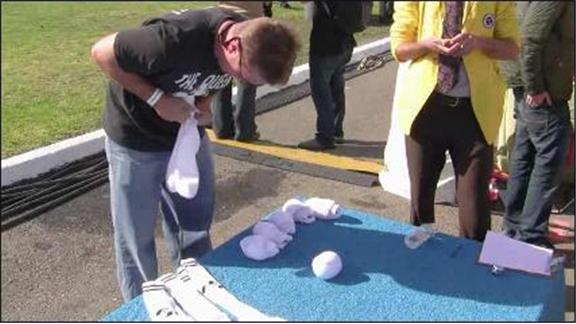 Charles Pravata balled 10 pairs of socks in 43.78 seconds.