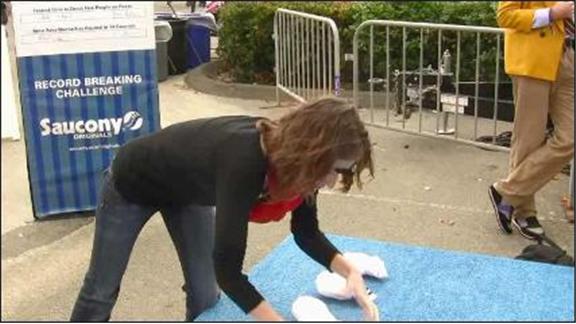 The feat was achieved on October 18, 2009 at the Saucony Originals tent at the Treasure Island Music Festival in San Francisco, California.