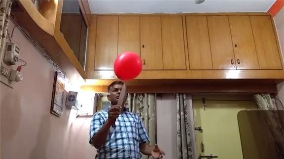 Suresh Gaur bounced a balloon on the tip of a knife 216 times in one minute.