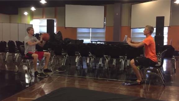 Austin and his friend made 103 basketball passes while sitting in one minute.