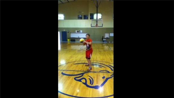 Gasper D. made a successful basketball shot from 40 feet while hula hooping.