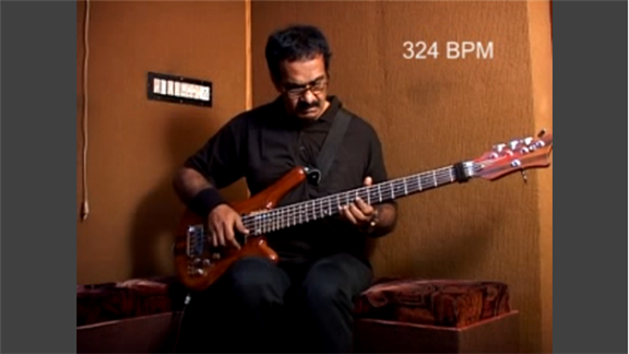 Jayen Varma played his bass guitar at 324 BPM.