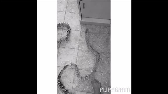 Jaydeepgurowb created a domino chain using 200 playing cards and successfully made the entire chain topple.