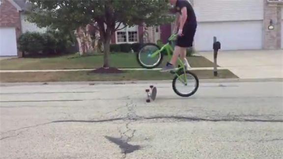 Jay Blake completed six BMX bike bunny hops over a skateboard in 30 seconds.