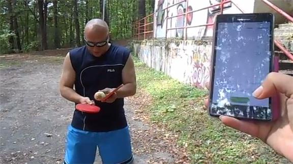 Pavol Durdik bounced an onion between two table tennis paddles 100 times in 20 seconds while wearing sunglasses.