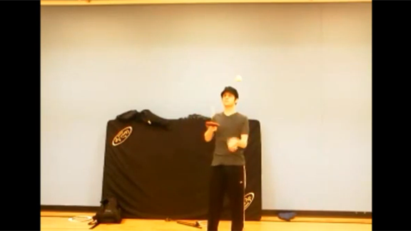 Pete Moyer bounced a ping pong ball on alternating sides of a paddle 42 times while juggling two balls in his other hand.
