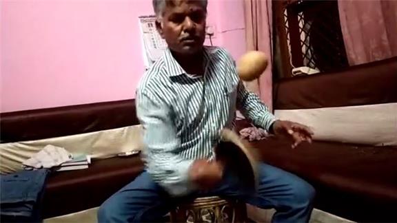 Suresh Gaur bounced a potato on alternate sides of a table tennis paddle 59 times while sitting on a potato.