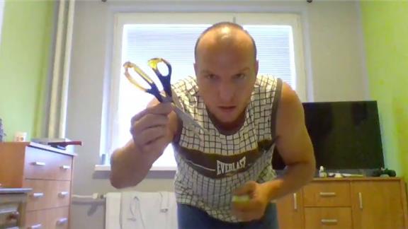 Pavol Durdik bounced a tennis ball on a pair of scissors 384 times.
