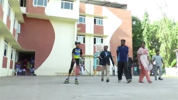 A student at Chinmaya Vidyalaya Matriculation School in Coimbatore, India bounced a basketball 5,739 times in one hour while roller skating.