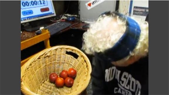 Think you could reshoot it with the apple breaking in the shot? Not doubting the authenticity of the video; just want to see it done.