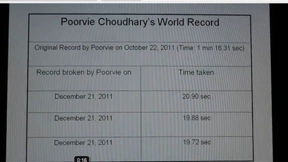 Poorvie Choudhary broke her own record in the record category for “[Fastest Time To Recite All Element Symbols From The Periodic Table][1]” three times in one day on December 21, 2011. [1]: http://recordsetter.com/world-record/recite-element-symbols-periodictable/12739