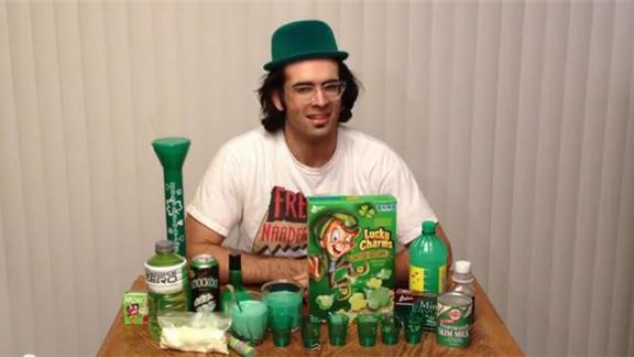 Naader Reda ate 11.5 ounces of breakfast cereal out of a green hat. He set the record to celebrate St. Patrick's Day.