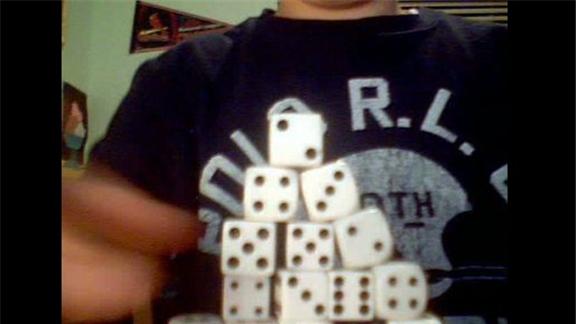 Viktor O. built a five-level dice pyramid in 12.36 seconds.