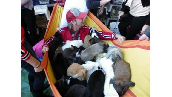 Nathan Morris, a radio DJ at Nova 93.7 in Perth, Australia, snuggled with 50 bunnies in a hammock at once, a new world record. He beat actress Cameron Diaz’s record by two bunnies.