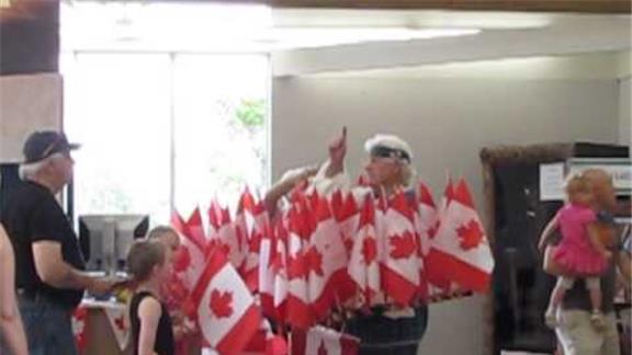 Doug McManaman balanced 50 Canadian flags on his chin while standing.